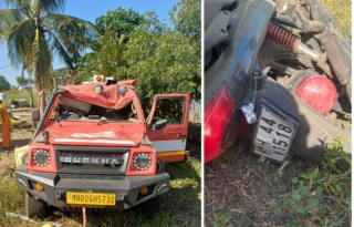 याबाबत मिळालेली माहिती अशी की, उपमुख्यमंत्री अजित पवार धारूरवरून केजकडे जात होते. त्यावेळी त्यांच्या ताफ्यातील गाडी क्र. MH 02 GH 5732 या गाडीच्या चालकाने धूनकवड फाटा परिसरात निष्काळजी पण एक गाडी चालवत दुचाकी स्वाराला जोराची धडक दिली. ताफा मार्गक्रमण करत असताना दुचाकीला धडक बसल्याने मोटार सायकल स्वारासह त्याची पत्नी व दोन मुली गंभीररित्या जखमी झाल्या.भोगलवाडी येथील विष्णू सुदे यांच्या दुचाकी क्र. MH 44 V 1518 ला ही धडक बसली.अपघात एवढा जबरदस्त होता की दुचाकी चुरुडा झाली आहे. स्थानिक नागरिकांनी तात्काळ मदतकार्य सुरू करून सर्व जखमींना धारूर ग्रामीण रुग्णालयात हलवले. त्यापैकी दोघांची प्रकृती चिंताजनक असल्याची माहिती मिळत आहे.या भीषण अपघातात विष्णू सुदे त्यांची पत्नी कुसुम सुदे त्यांच्या दोन लहान मुली हे गंभीर जखमी झाले मात्र,दोघांची प्रकृती गंभीर झाल्यानंतर त्यांना तातडीने पुढील उपचारांसाठी अंबाजोगाई येथील शासकीय रुग्णालयात हलविण्यात आले आहे.