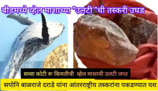 बीड — आंतरराष्ट्रीय बाजारात सोन्यापेक्षाही जास्त किंमत असलेल्या व्हेल माशाची उलटी ची तस्करी करणाऱ्या दोन जणांना उलटी सह ताब्यात घेण्यात पोलिसांना यश मिळाले. या कारवाईत सव्वा कोटी ची उलटी जप्त करण्यात आली. ही बीड जिल्ह्यातील पहिलीच कारवाई आहे.