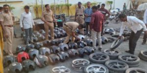 बीड — गेवराई पोलिसांनी मोठी कारवाई करत नेकनूर मधून 50 हून अधिक चोरीच्या मोटारसायकली जप्त केल्या आहेत. जिल्ह्यातील दुचाकी चोरीच्या मोठ्या रॅकेटचा पर्दाफाश झाला आहे. पोलीस कारवाईत मोटार सायकल चेसिज् , इंजन, स्पेअर पार्टस् असा 25 लाख रुपयांचा मुद्देमाल जप्त करण्यात आला आहे.