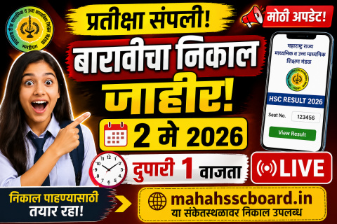 महाराष्ट्र राज्य माध्यमिक व उच्च माध्यमिक शिक्षण मंडळामार्फत फेब्रुवारी-मार्च 2026 मध्ये घेण्यात आलेल्या उच्च माध्यमिक प्रमाणपत्र (इ.12 वी) परीक्षेचा निकाल शनिवार, दिनांक 2 मे 2026 रोजी दुपारी 1 वाजता ऑनलाइन पद्धतीने जाहीर करण्यात येणार आहे. सदर निकाल अधिकृत संकेतस्थळावर उपलब्ध करून देण्यात येईल. विद्यार्थ्यांनी आपला आसन क्रमांक व इतर आवश्यक तपशीलांच्या आधारे निकाल पाहता येईल. यासंदर्भात अधिक माहिती देण्यासाठी शनिवार, 2 मे रोजी सकाळी 11 वाजता राज्य मंडळाच्या कार्यालयात पत्रकार परिषद आयोजित करण्यात आली आहे. बारावीचा निकाल शनिवारी जाहीर होणार असून सकाळी 11 वाजता बोर्डाची पत्रकार परिषद होणार आहे. त्यामध्ये, राज्याचा निकाल, कोणत्या विभागात किती निकाला आणि एकूण विद्यार्थ्यांच्या अनुषंगाने निकाला जाहीर होईल. त्यानंतर, दुपारी 1 वाजता विद्यार्थ्यांना ऑनलाइन निकाल पाहता येणार आहे. mahahsscboard.in या संकेतस्थळावर हा निकाल पाहता येणार आहे.