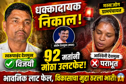 जिल्ह्यातील मस्साजोग ग्रामपंचायतीच्या सरपंचपदाच्या पोटनिवडणुकीत अत्यंत लक्षवेधी आणि धक्कादायक निकाल समोर आला आहे. या निवडणुकीत स्वरूपानंद देशमुख यांनी मयत सरपंच संतोष देशमुख यांच्या पत्नी आश्विनी देशमुख यांचा पराभव करत मतांच्या मोठ्या फरकाने विजय मिळवला आहे.