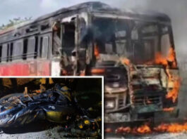 केज कळंब रस्त्यावर पेटलेल्या बसने अखेर बळी घेतलाच