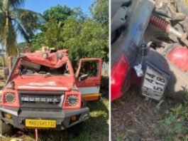 “ज्ञानराधा बँक” घोटाळ्याचे आरोपी कुटे पती-पत्नीला आणणाऱ्या पोलीस व्हॅनची मोटार सायकल...